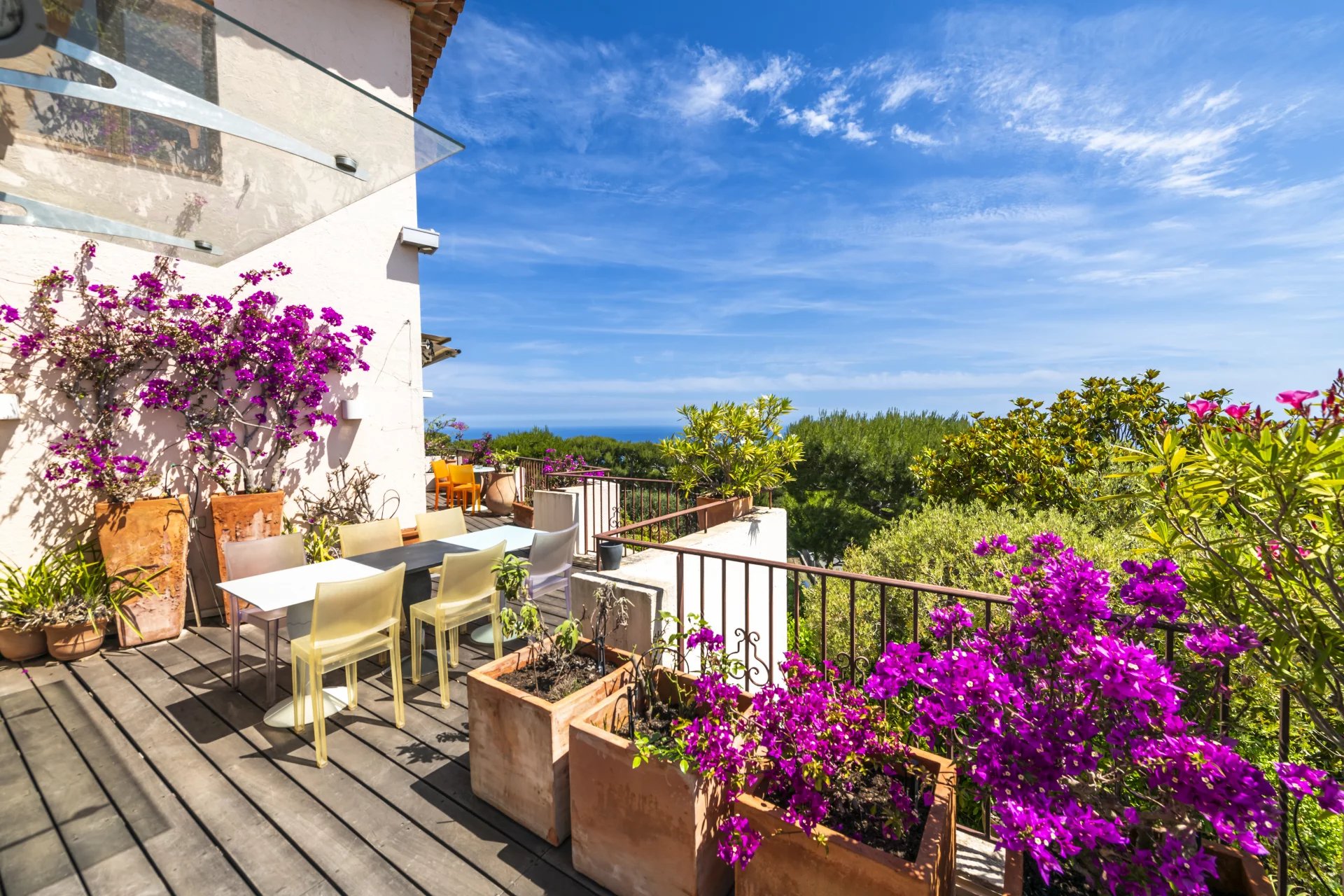 CO-EXCLUSiViTY - At the Col de Villefranche, in a small secure Provencal-style residence with a caretaker and a swimming pool, this modern duplex apartment features large terraces offering views of the bay of Villefranche-sur-Mer and the Baie des...
