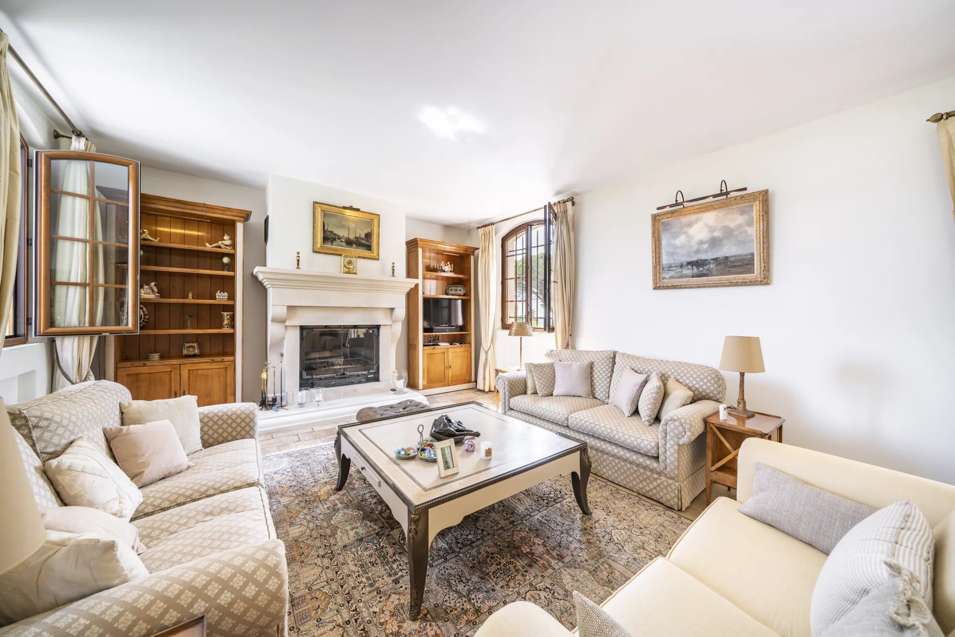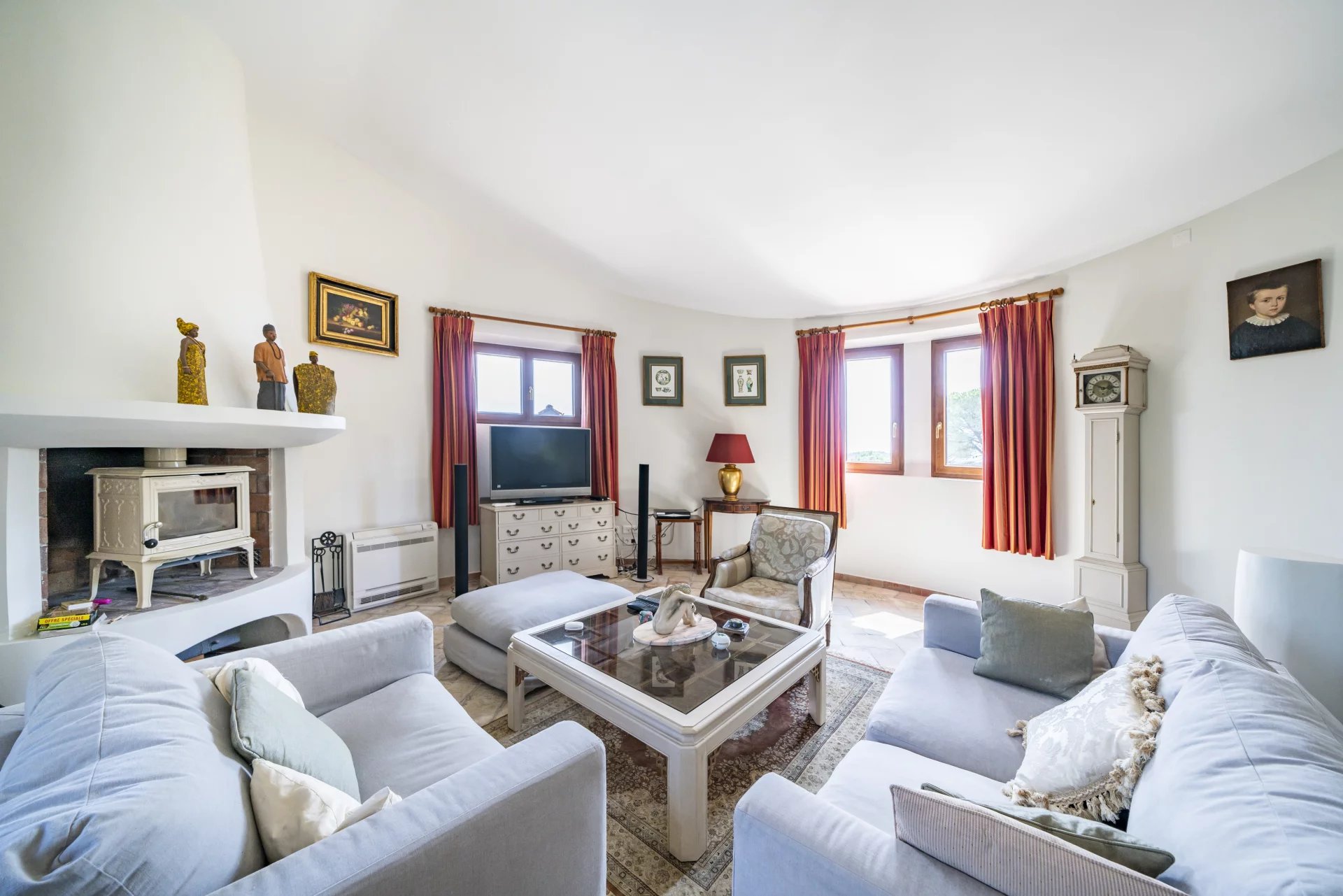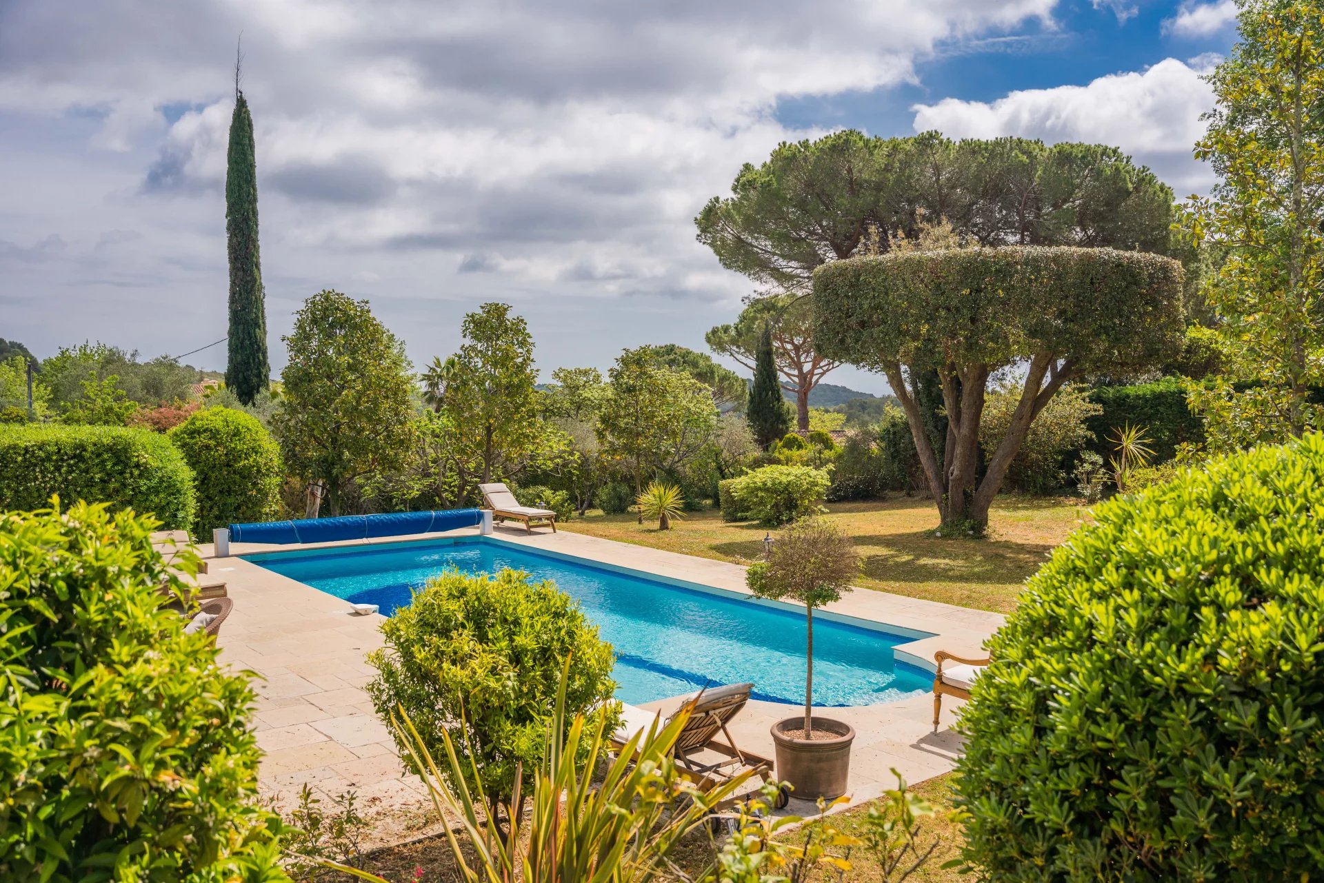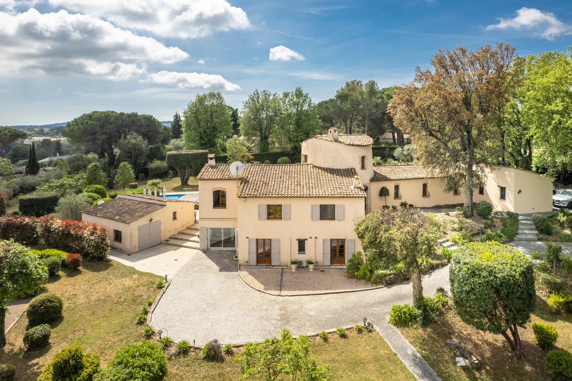 A very quiet and private location boasting views to the Alpes and sea-view. An impressive driveway leads up to the villa situated at the very end of a private domain.