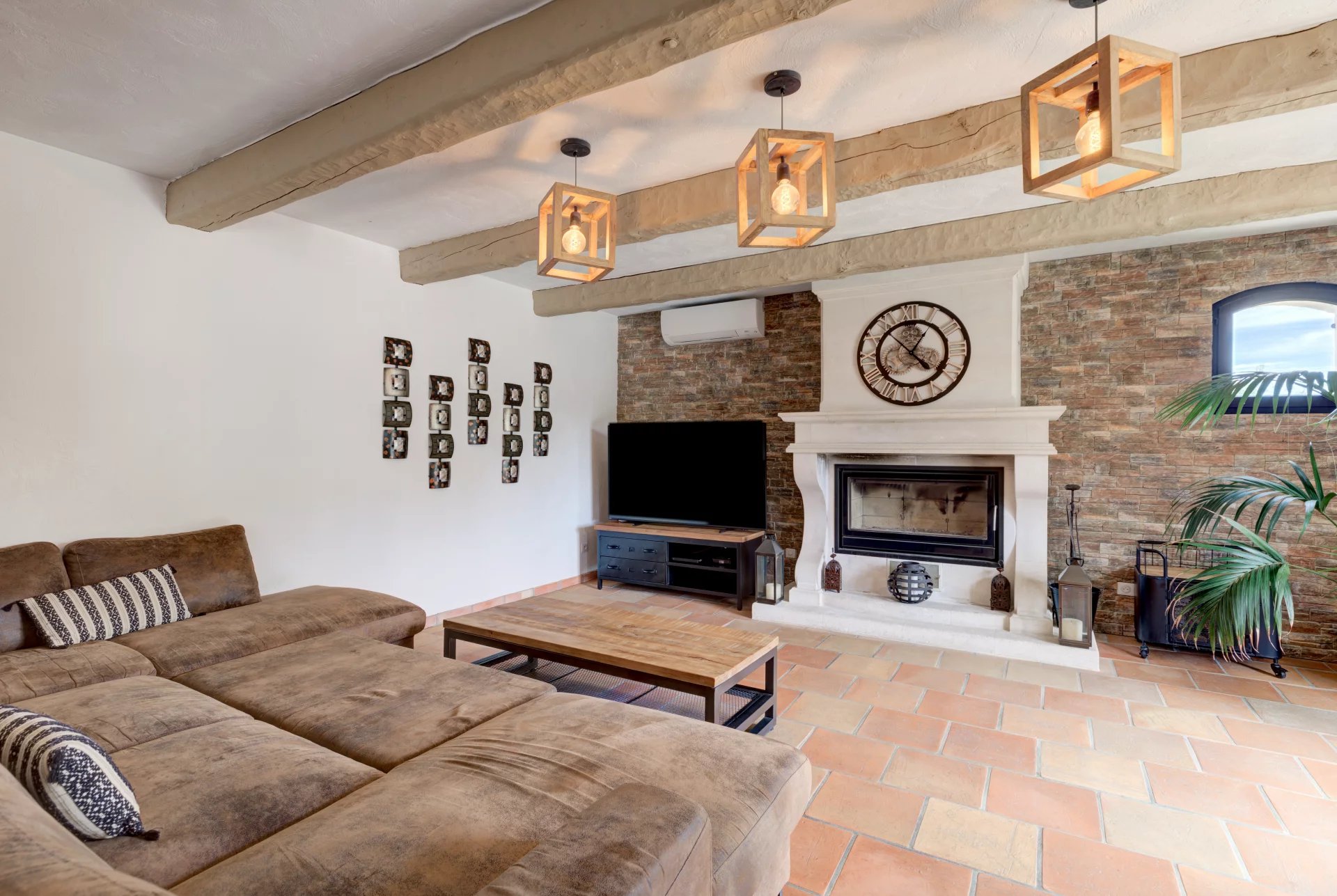 Die helle Villa verfugt uber ein Doppelwohnzimmer mit Kamin, eine separate Einbaukuche, 4 Schlafzimmer, davon 3 auf einer Ebene und ...