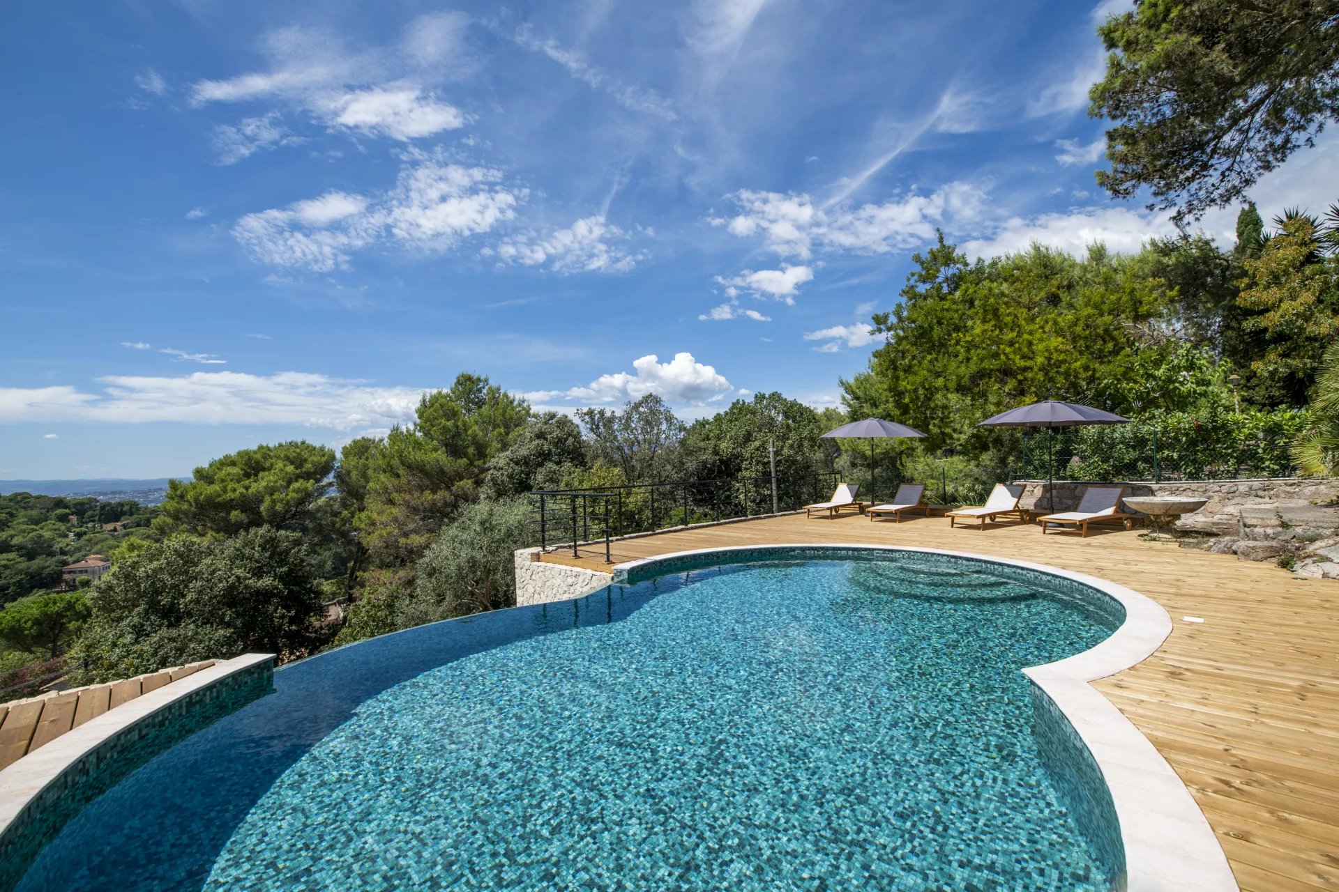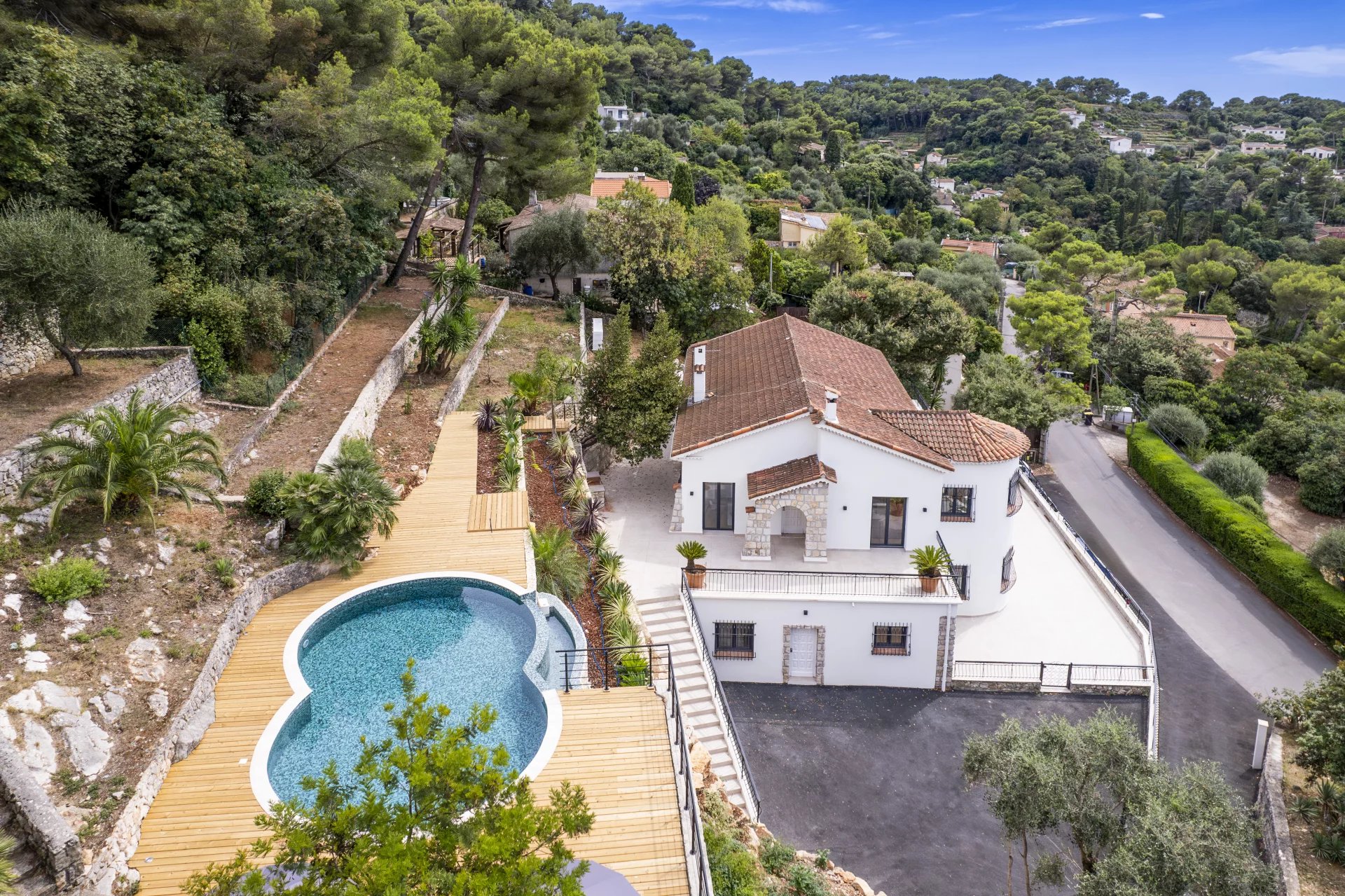 Situated in a sought-after area, this superb 400 m2 villa on two levels offers spacious living accommodation and uninterrupted views over the hills of Nice. it is surrounded by vast 150 and 160 m2 terraces and has a beautiful swimming pool with uninte...