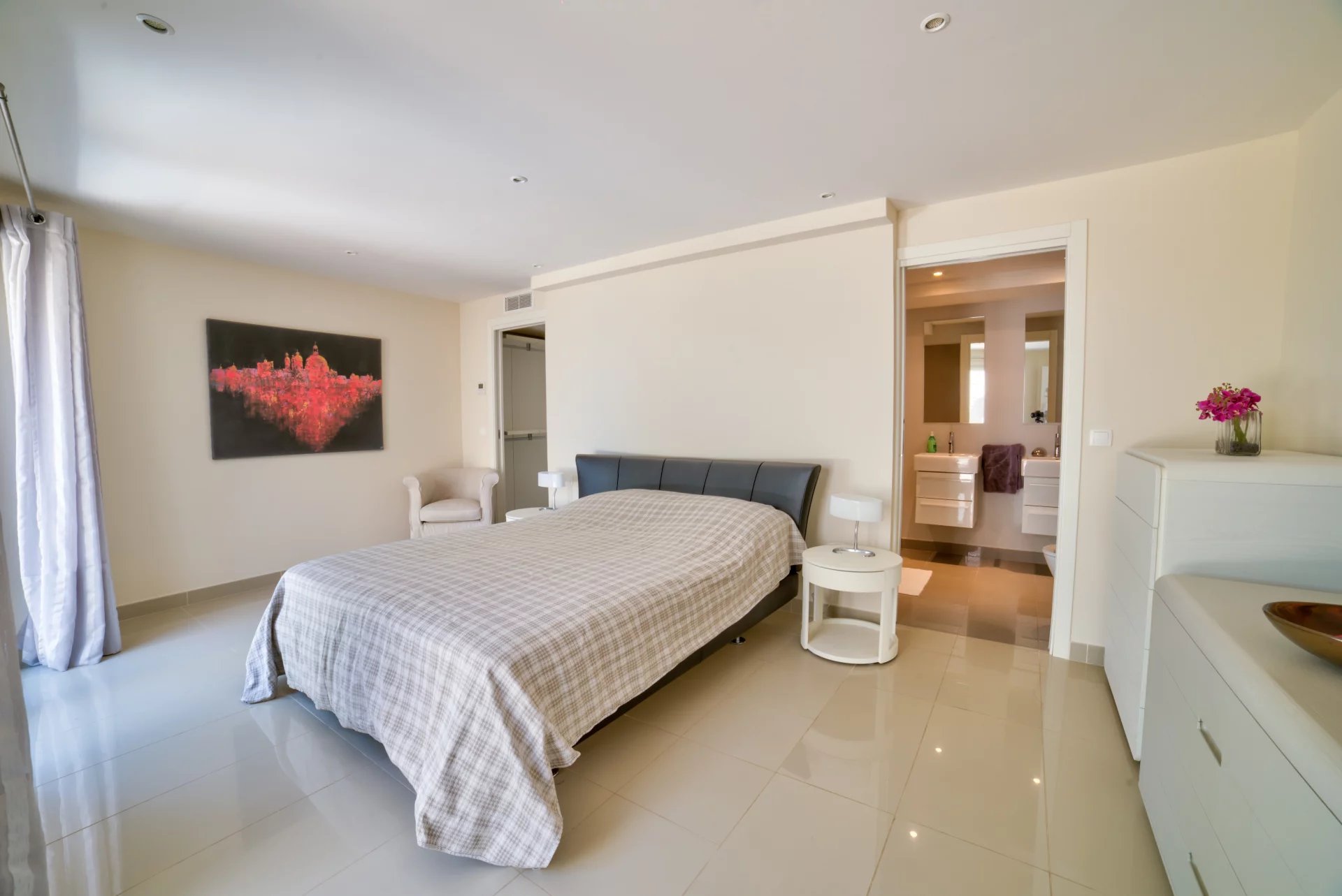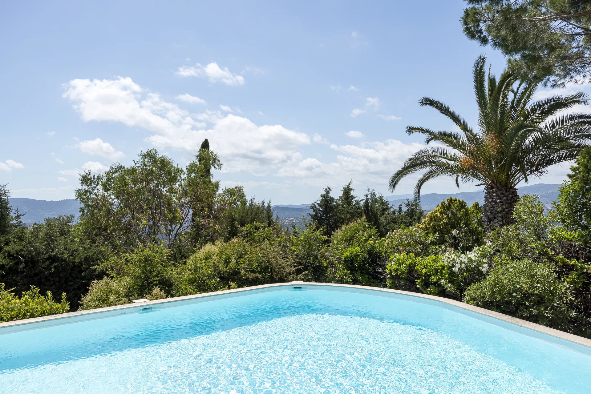 Set in a high position with an open view on the Esterel, in a secured domain, this stunning Couelle villa of approx. 620sqm has been entirely renovated in a contemporary style. it offers large and bright reception rooms leading onto the terrace, the pool and the la...