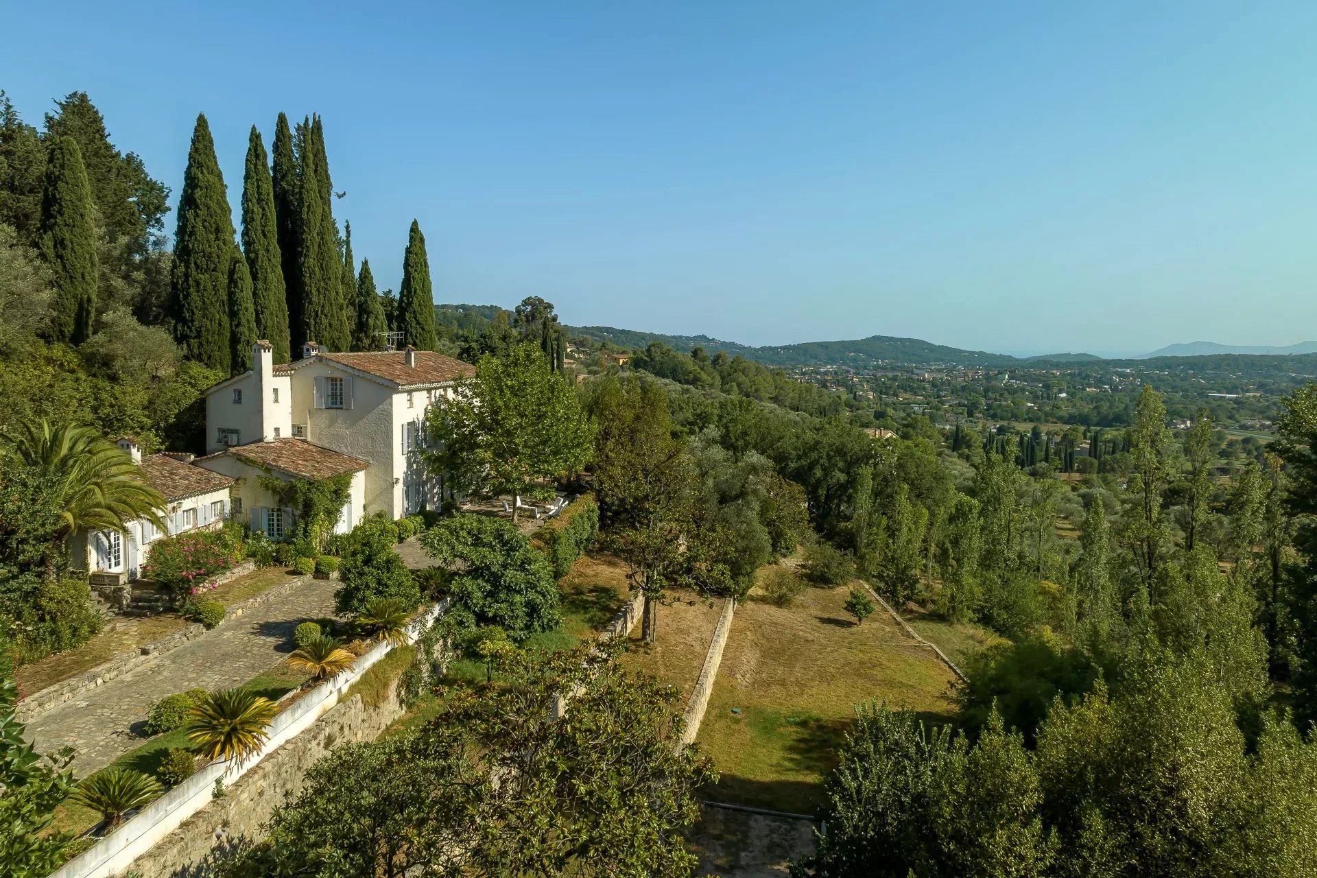 Dieses Anwesen befindet sich in einer erhohten Position in der Nahe des Dorfes Plascassier, ist nach Sudwesten ausgerichtet und bietet einen Panoramablick bis zum Meer. Es besteht aus einem Haupthaus, einem Gastehaus und einem Hausmeisterhaus. Auf einem Grund...