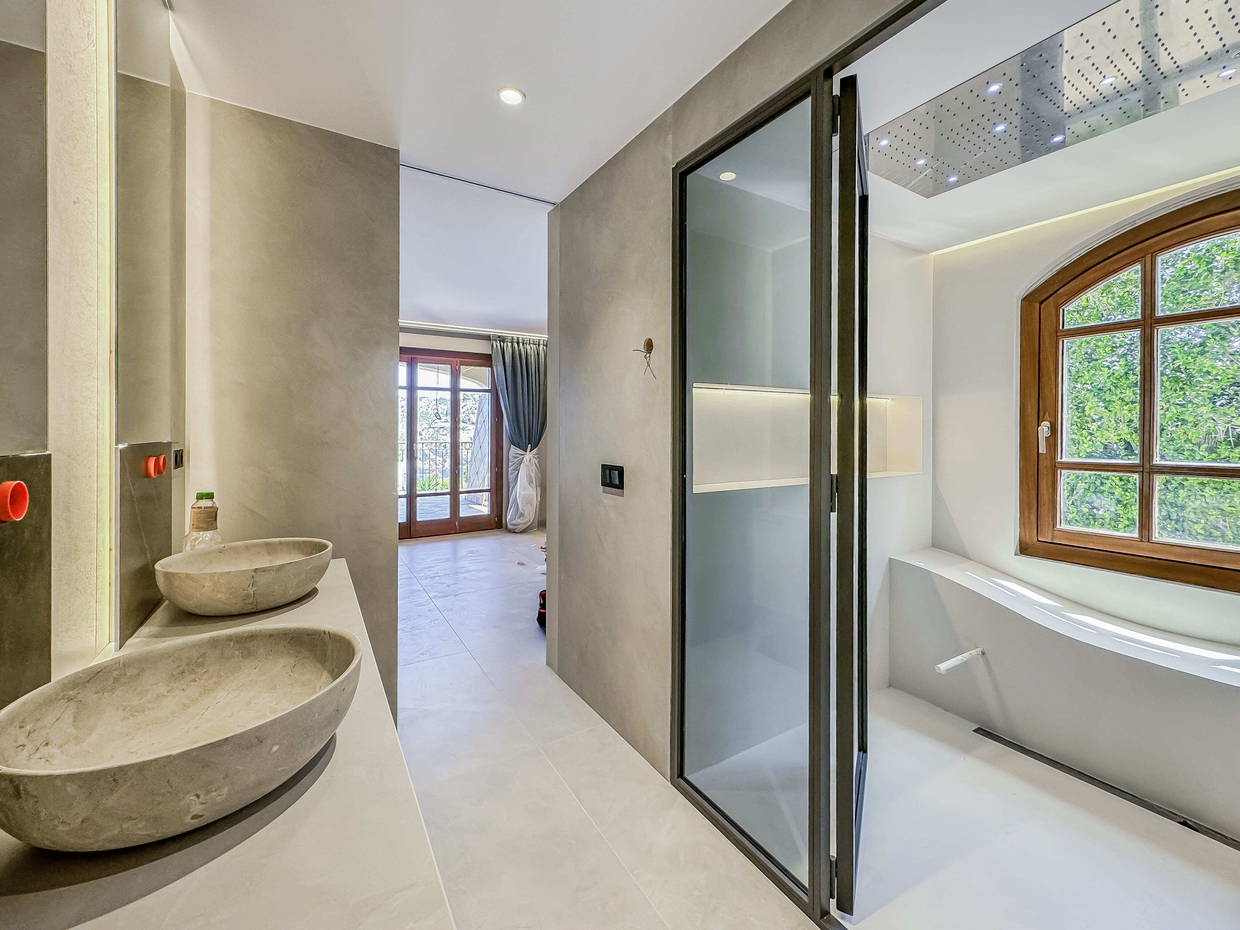 Es verfugt uber zwei Schlafzimmer mit jeweils eigenem Bad. Das Hauptschlafzimmer ist sehr grosszugig gestaltet, bietet zahlreiche Einbauschranke und einen direkten Meerblick vom Bett aus. Die angrenzende Terra...