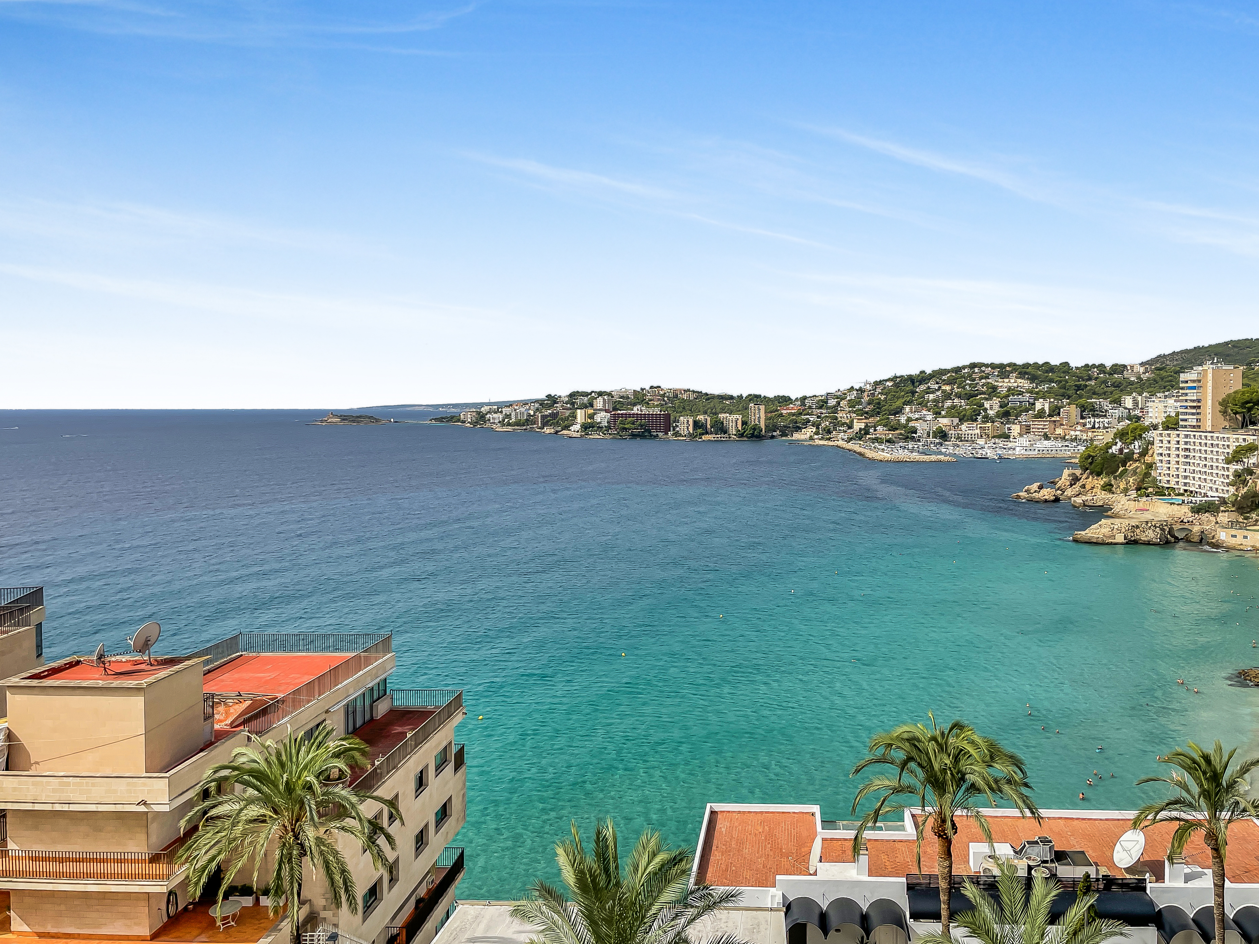 Wir prasentieren ihnen eine wunderschon renovierte Wohnung in Cala Mayor mit atemberaubendem Blick auf das Meer und die Bucht von Palma. Diese wunderschone immobilie befindet sich im 7. Stock eines ruhigen Gebaudes und verfugt uber 4 Schlafzimmer, 2 Badezimmer und ein Gaste-WC.