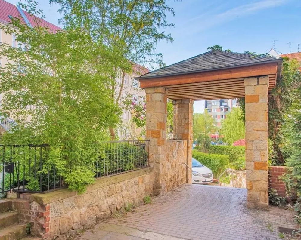 The building, planned around 1910 by the architect Hermann Buchholz, was created as part of the former "Albrechts-Park residential complex", which was arranged in a U-shape around a small private road and is now a listed building.